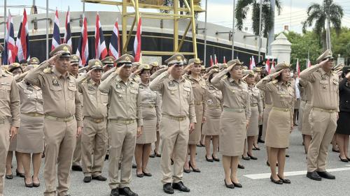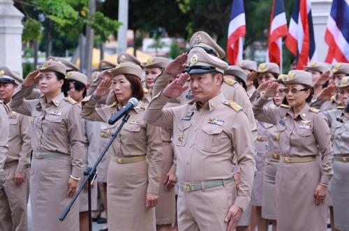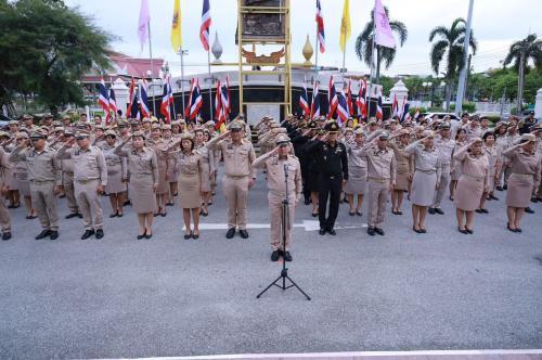 พช.ชลบุรี ร่วมพิธีเคารพธงชาติอย่างพร้อมเพรียง เพื่อรำลึกถึงรัชกาลที่ 6 ผู้พระราชทานธงไตรรงค์เป็นธงชาติไทย